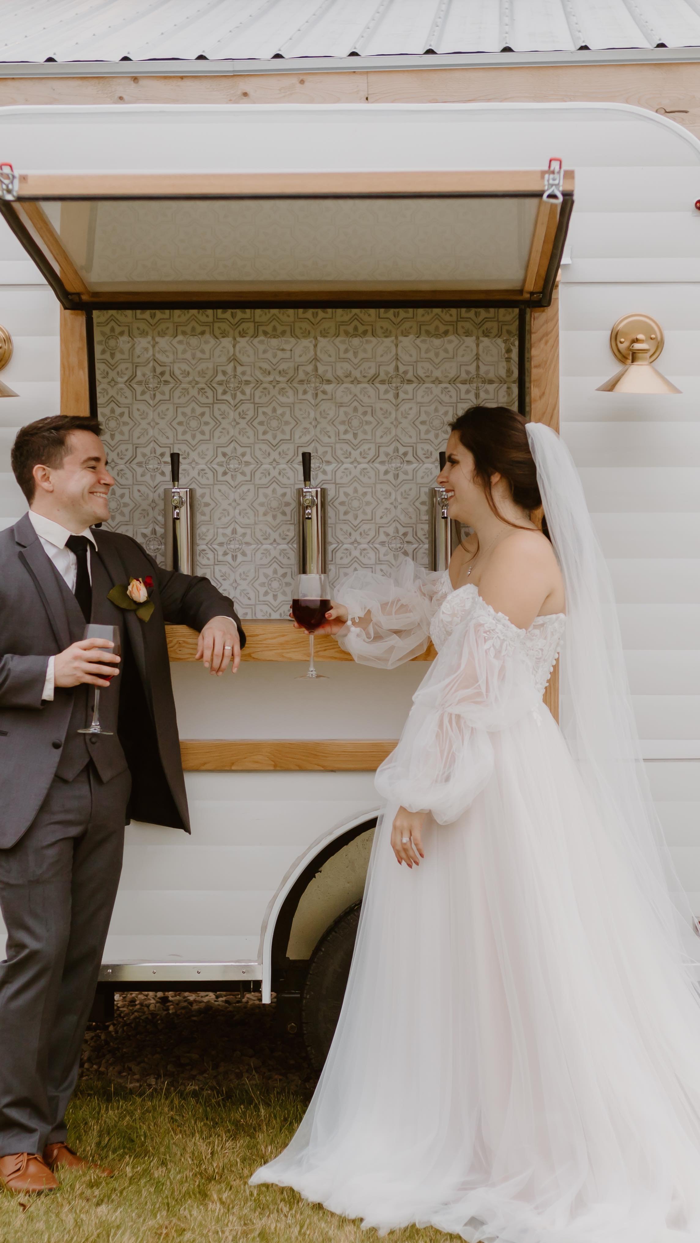 We serve bevvies on tap with our charming mobile tap bar service. Our tap trailer is the perfect addition to elevate your wedding, providing a special touch to your special day. Whether you're seeking a distinctive cocktail hour experience or a full night of drinks on tap, we got you covered. Our tap trailer is perfect for outdoor venues, ranging from backyards to secluded fields.